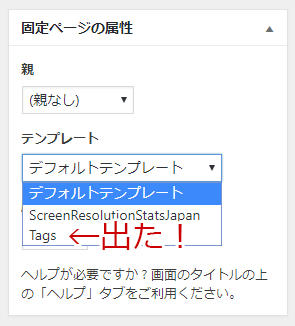と、この記事をここ↑まで書いて公開した直後、固定ページを確認するとテンプレートが表示されていました。
