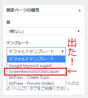 すると見事固定ページのテンプレートとして追加されました。