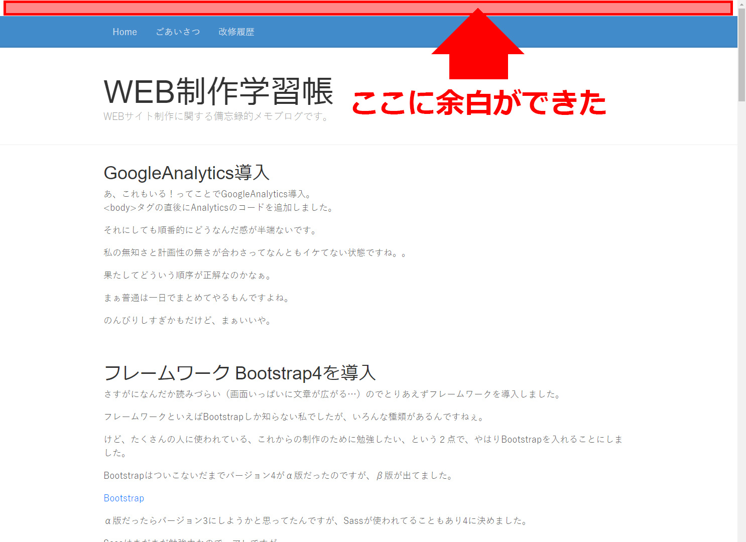 すると…なぜかサイトの上部に余白ができました。